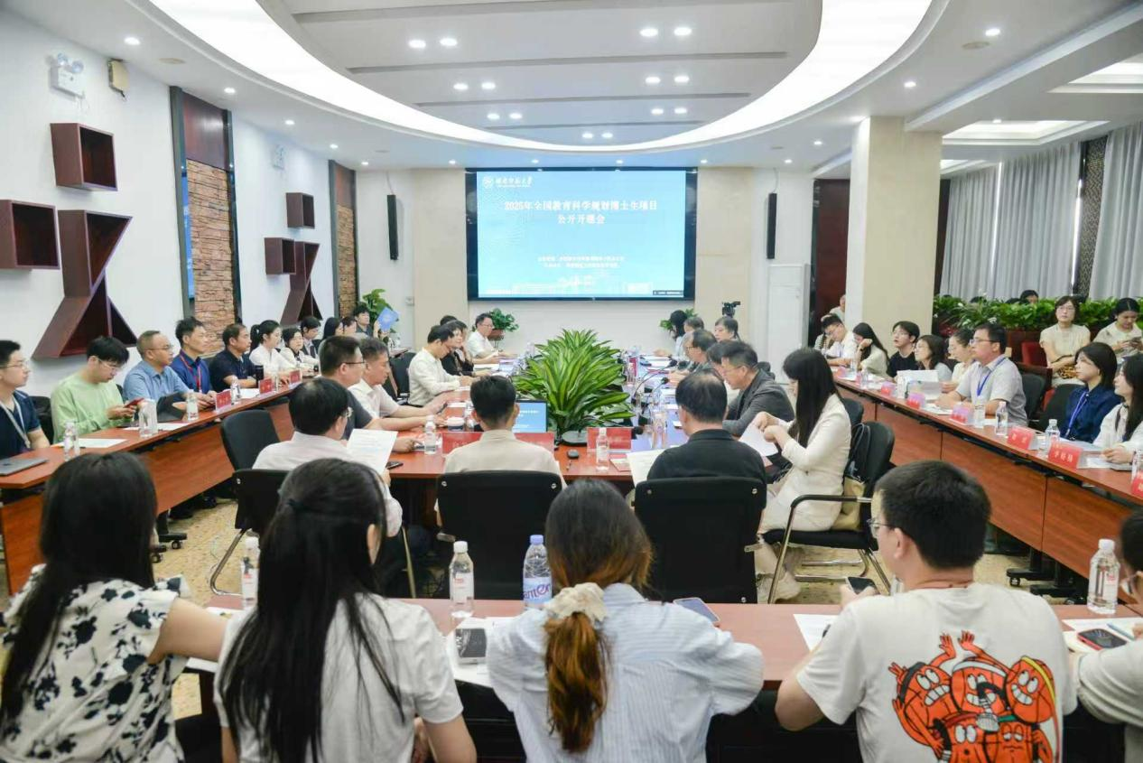 (供稿 社会科学处)近日,全国教育科学规划博士生项目公开开题会在我校教育科学学院举行。湖南省教育科学研究院院长杨颖、省教科规划办常务副主任李小球、我校副校长潘安练与来自全国相关高校的34位专家学者和立项团队成员参加会议。全国教科规划办常务副主任邓友超、我校教育科学学院院长刘铁芳共同主持会议。