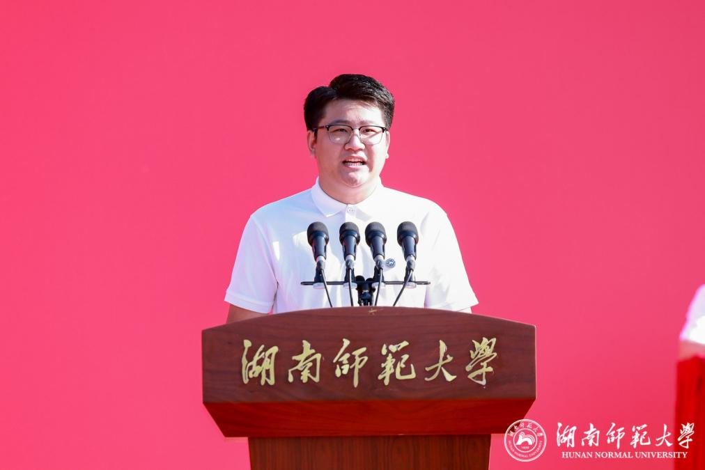 生命科学学院2025级博士研究生李焘、商学院2025级本科生匡珍慧作为新生代表发言。他们表示,将郑重接过历史接力棒,永葆爱国赤子之心、激扬奋发向上之心、涵养创新探索之心,追求卓越、脚踏实地、勇担使命,携手书写无愧于时代的青春华章。