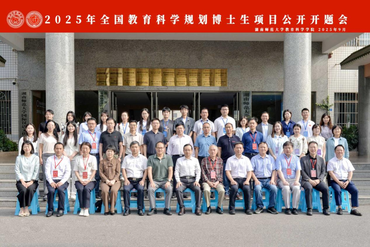 (供稿 社会科学处)近日,全国教育科学规划博士生项目公开开题会在我校教育科学学院举行。湖南省教育科学研究院院长杨颖、省教科规划办常务副主任李小球、我校副校长潘安练与来自全国相关高校的34位专家学者和立项团队成员参加会议。全国教科规划办常务副主任邓友超、我校教育科学学院院长刘铁芳共同主持会议。