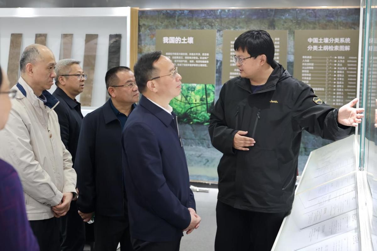 会前,谈文胜一行实地走访了我校地学博物馆。